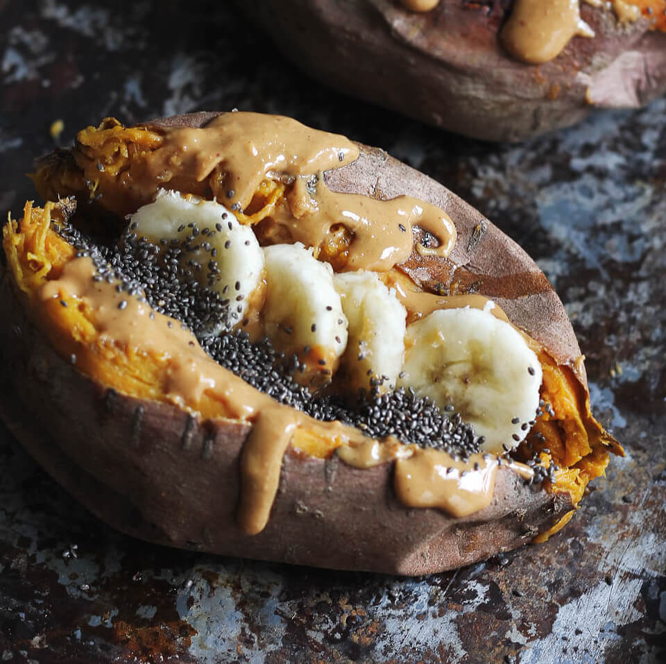 Baked sweet potato with yoghurt & almond butter